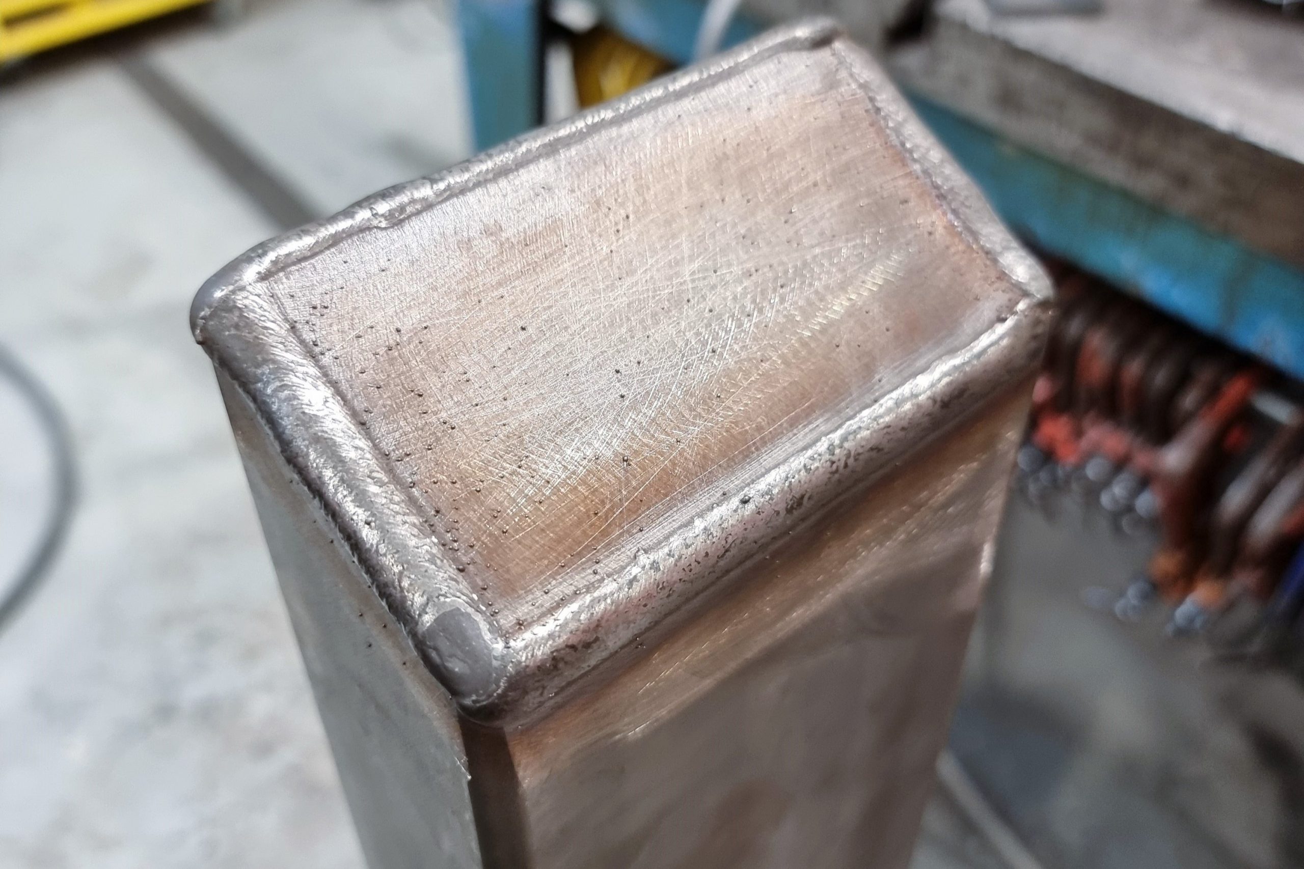 The robot welder can weld parts automatically to a very high standard.